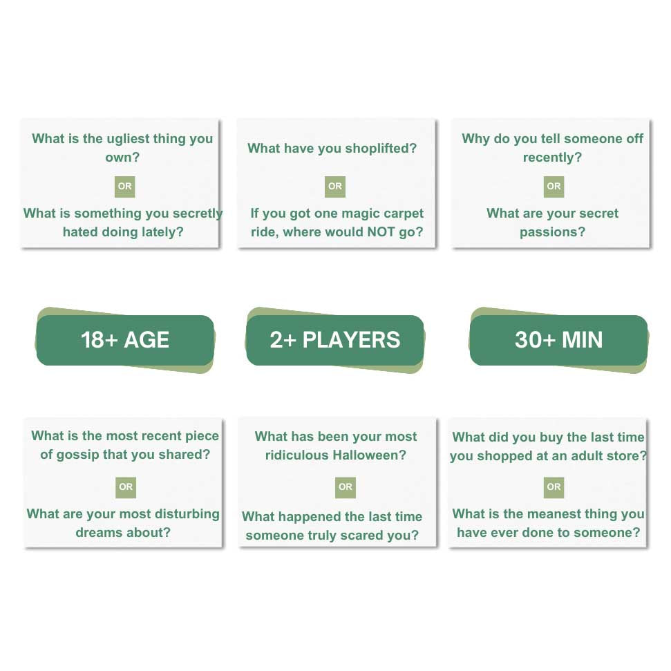 Laugh louder and share the weirdest stories with friends. This deck turns any sesh or game night into an unforgettable roast of revelations and awkward honesty; quick to learn and delightfully inappropriate, it’s perfect for breaking the ice and keeping the laughs rolling.