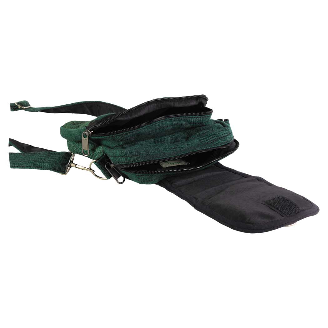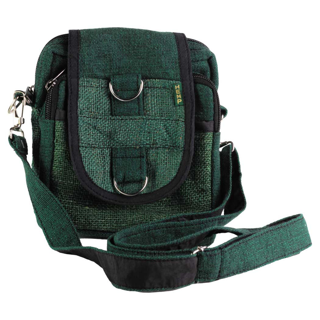 A compact passport bag made from durable Himalayan hemp that keeps travel essentials secure and easy to reach. It has roomy zippered compartments, exterior D-rings for keys and clips, and a removable strap so you can wear it across the body or attach it to a belt.