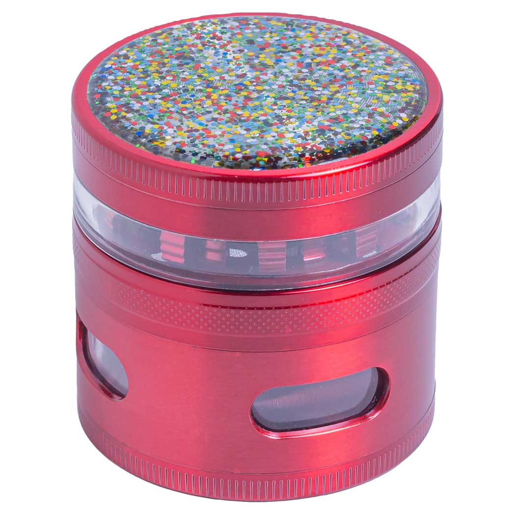 This 2.5" tall, 63mm Crushers Classic Sparkling See Through grinder combines a glittery top with a transparent chamber for easy content viewing. The durable metal four-piece design delivers sharp, consistent grinding every time.