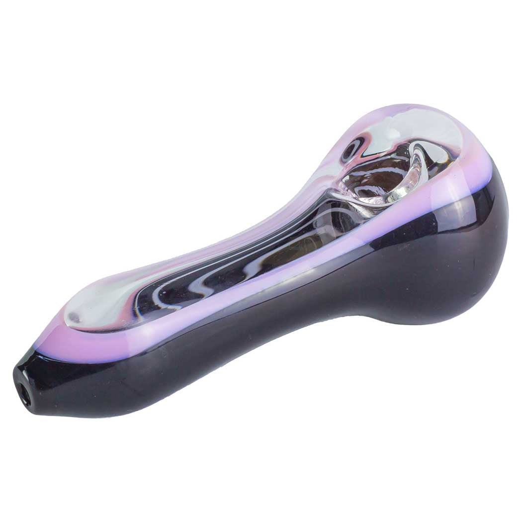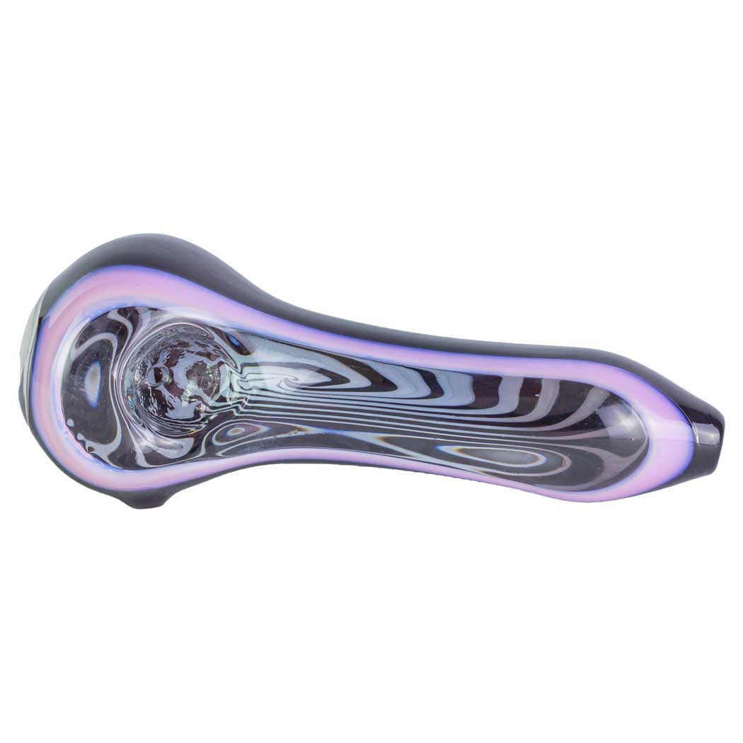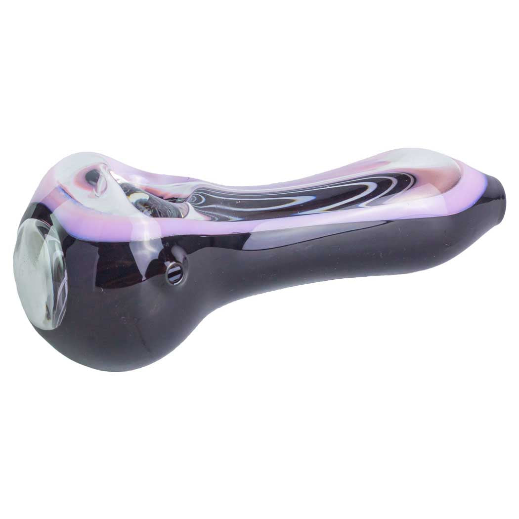 Compact spoon pipe with a clear viewing window that reveals a trippy internal pattern; comfortable mouthpiece and left-side carb for simple airflow control.