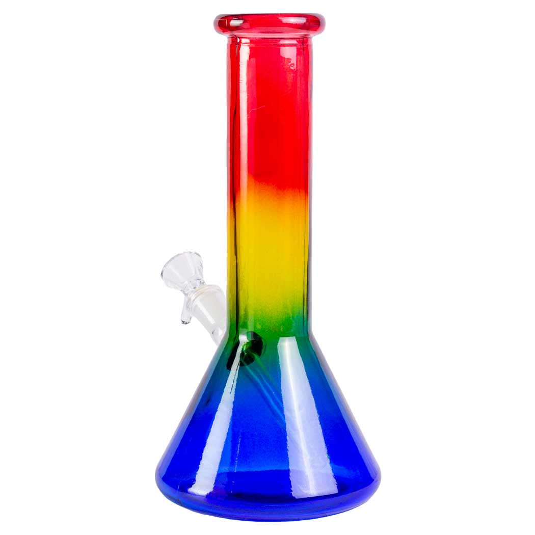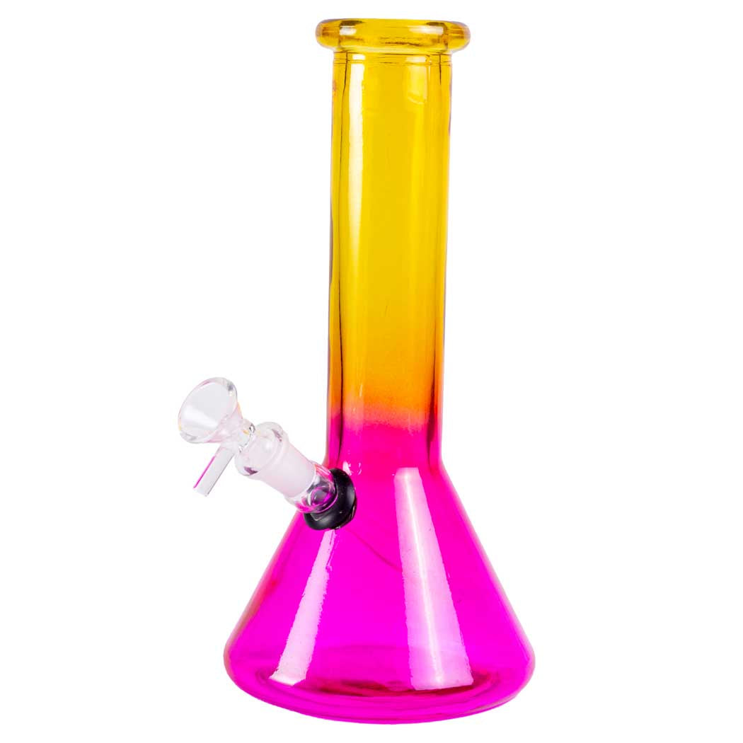 Bring a burst of color to sessions with the Ombre 10" Beaker Glass Water Pipe - a sturdy borosilicate beaker that blends vivid dual hues into a striking gradient while delivering smooth, slitted-disc filtration through a removable diffuser downstem for reliable, easy-to-use performance.