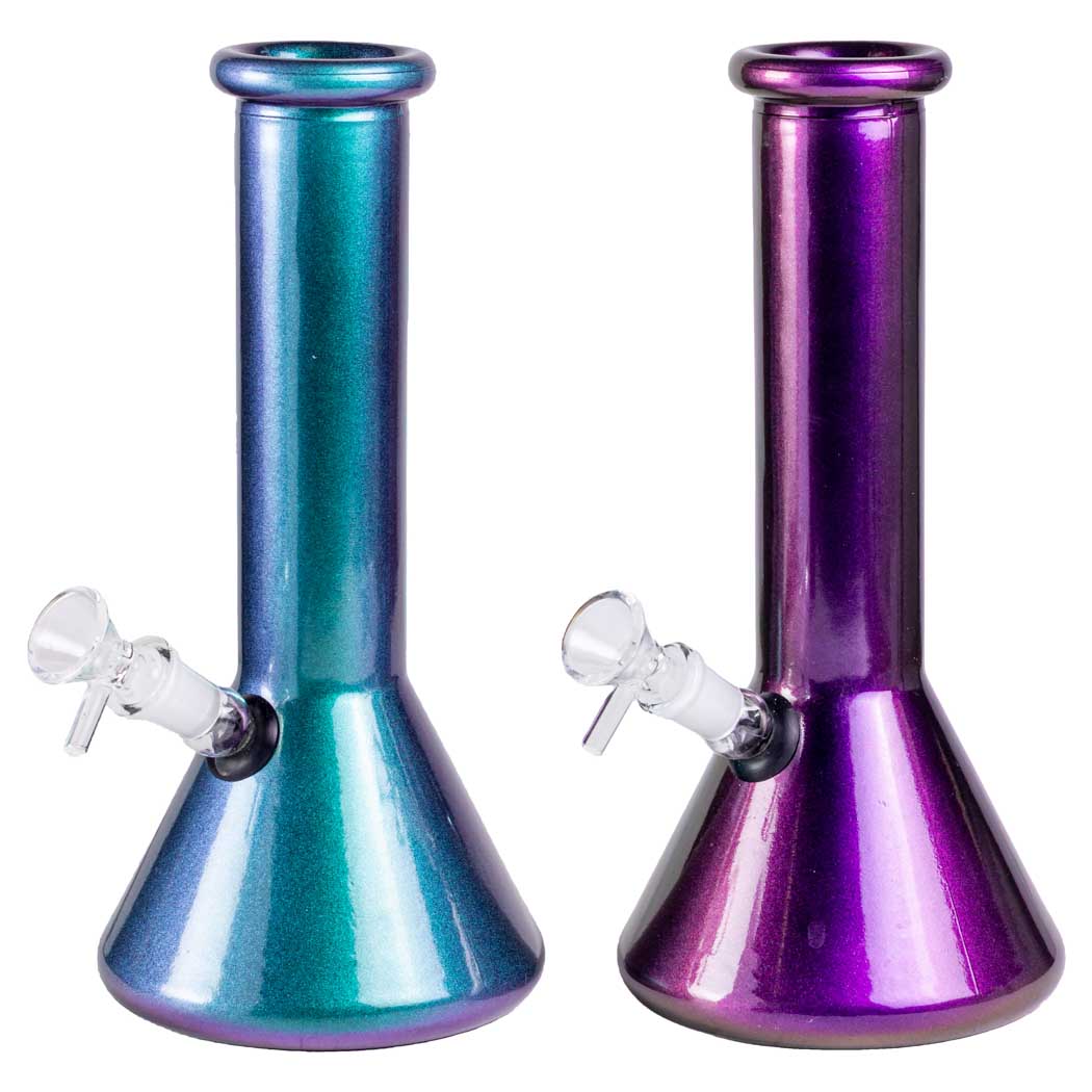 Make sessions shimmer with the SeshGear Sparkle & Shine 10" Beaker Glass Water Pipe - a sturdy borosilicate beaker with a glossy, glitter-coated finish that catches the light while delivering smooth, slitted-downstem filtration; colorful, eye-catching, and ready to brighten your rotation.