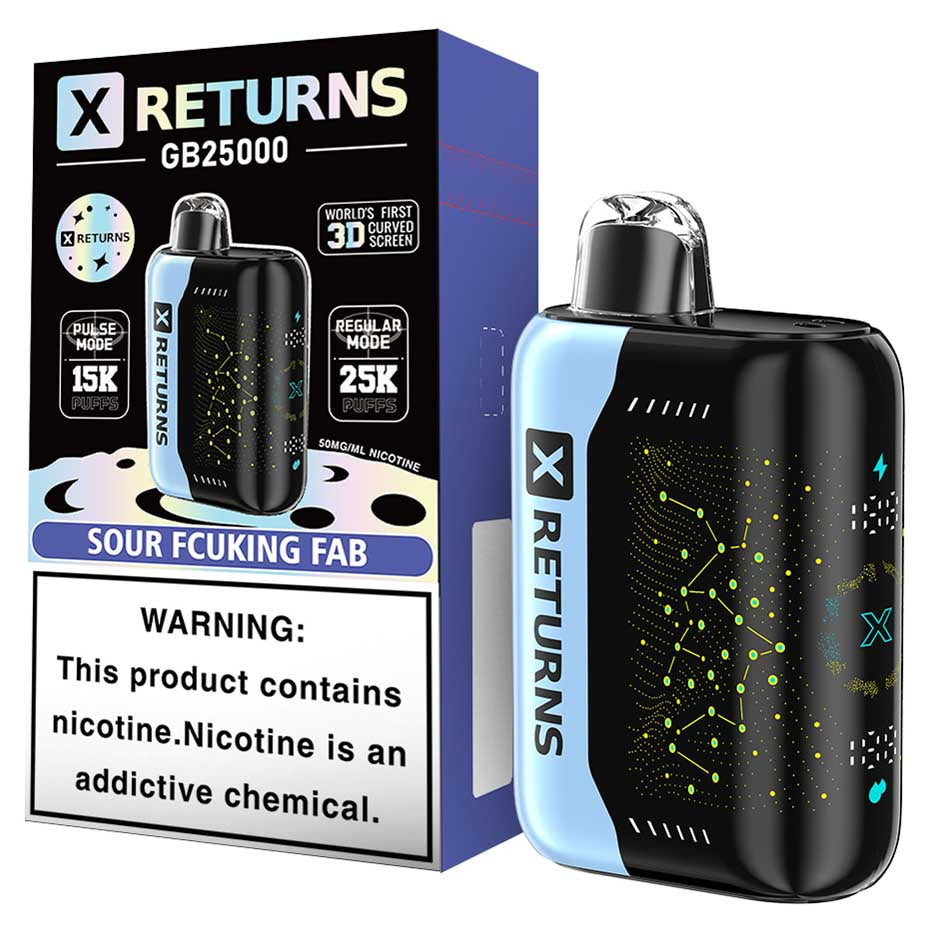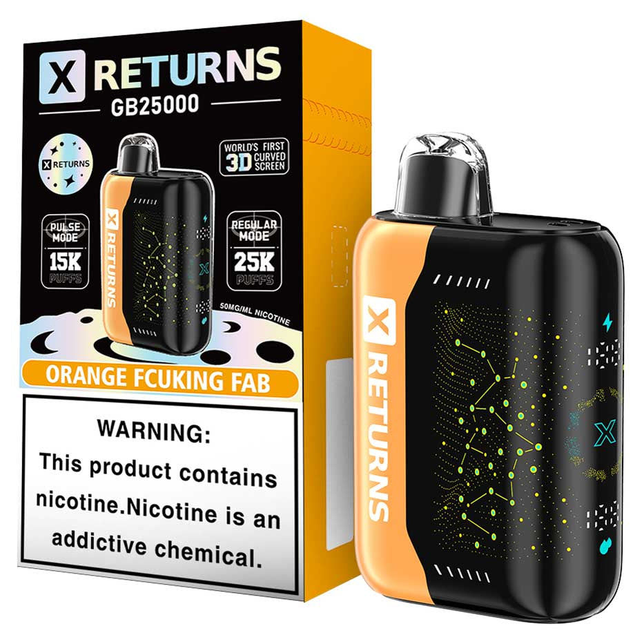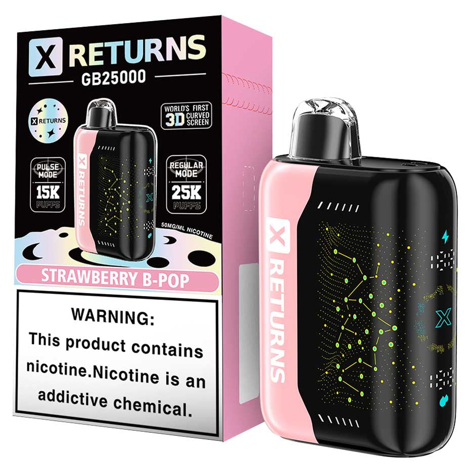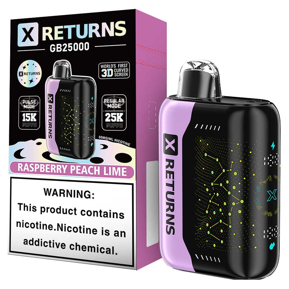Discover cutting-edge vaping technology with the X Returns GB25000 Disposable. Featuring the world’s first 3D curved screen, this device combines style with performance. Enjoy three versatile modes: Close (childproof) for safety, Regular Mode for up to 25,000 puffs, and Pulse Mode for an intense 15,000-puff experience. With a bold 50mg nicotine strength and quick-charge capability, this disposable ensures convenience and satisfaction in every puff.