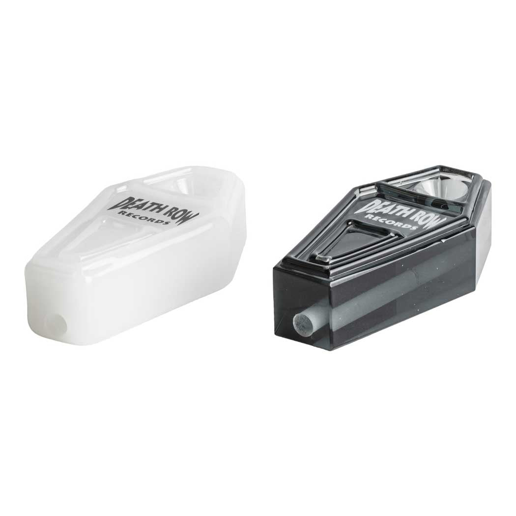 Take your session to the dark side with this bold Coffin-shaped glass hand pipe featuring the iconic Death Row Records branding. Available in sleek black or crisp white, this compact piece delivers style and function in one. Its unique silhouette and front carb make it a standout addition to any collection—perfect for fans who want something edgy yet practical.