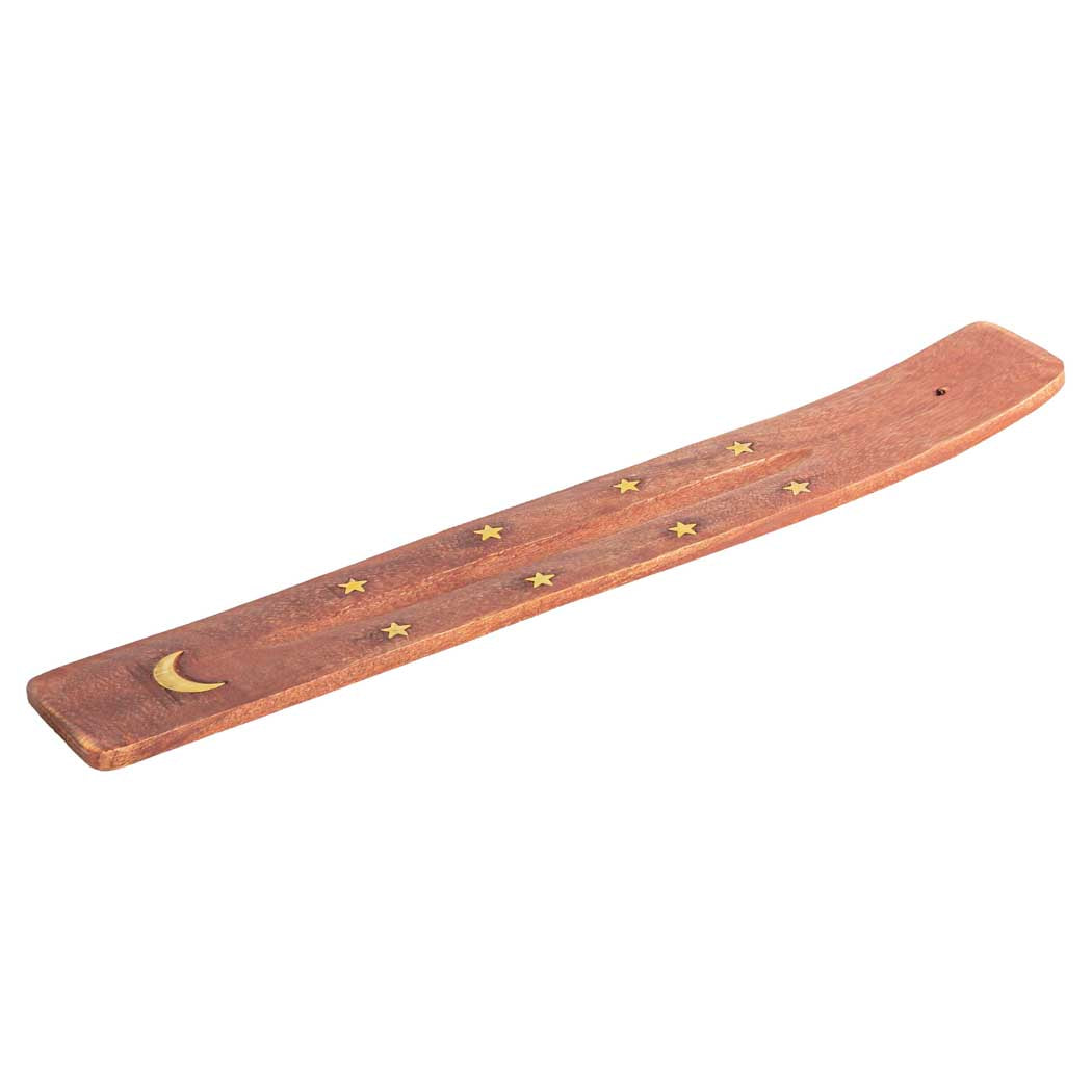Meet your tidy burner with a little sparkle—this Wood 10" Incense Burner updates the classic ash catcher with assorted brass inlays, a pre?drilled end that anchors bamboo?core sticks, and a gentle groove that keeps ash off your surfaces in a slim 1.5" profile.
