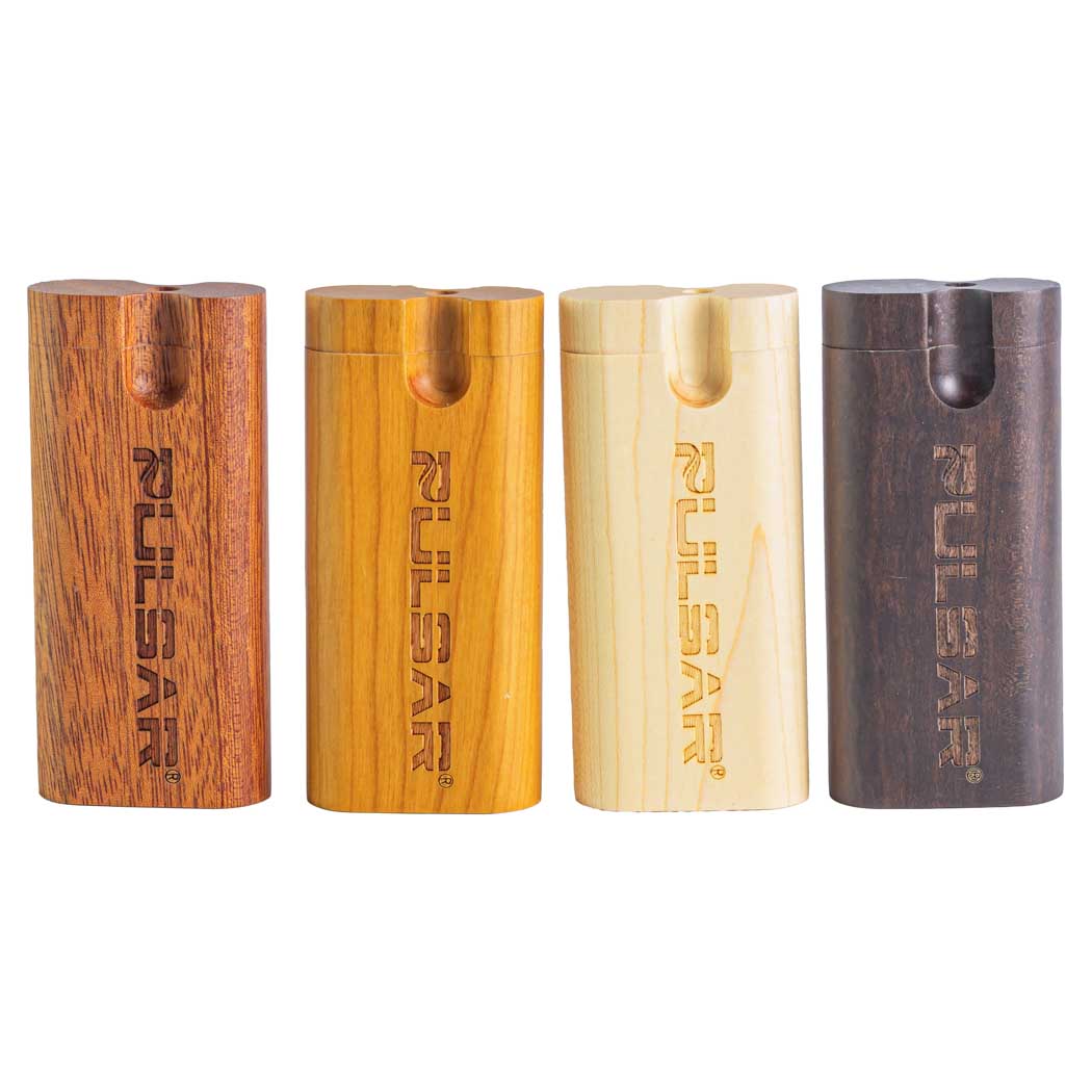 Pocket ready and cleverly organized, the Pulsar 4" Classic Twist Top Wooden Dugout packs a spring-loaded taster, herb storage, and a metal poker into a smooth mixed wood case; twist to open, pack, and go.