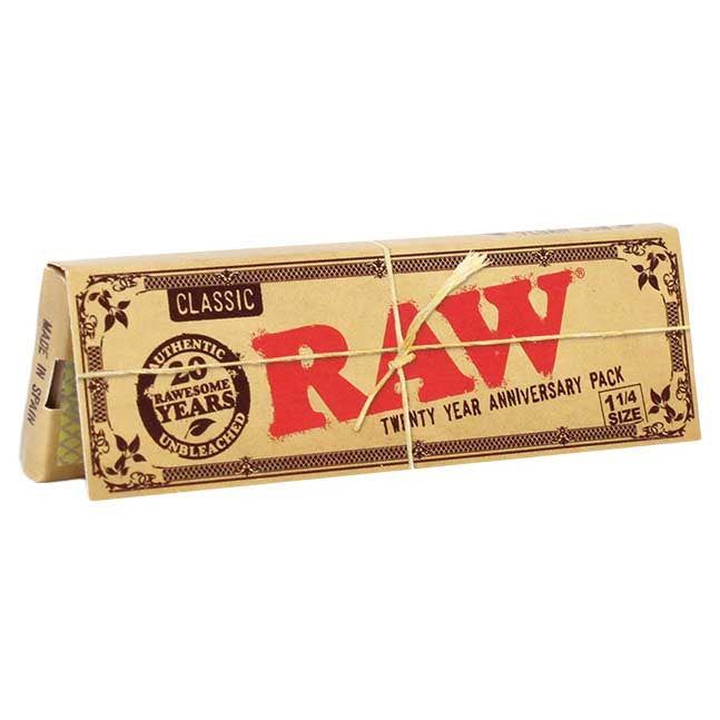 Celebrate two decades of RAW with this special 20th Anniversary pack of Classic 1¼ rolling papers. Finished in the brand’s signature vintage kraft style, these unbleached leaves deliver a slow, even burn and a clean, natural paper taste—ideal for traditional rolling and everyday use.