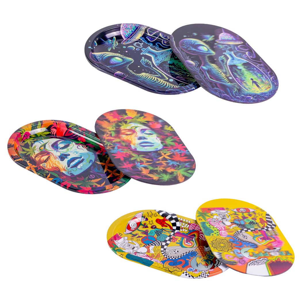 Mini 5" x 3" Rolling Tray with Magnetic Lenticular Lid - Assorted Designs