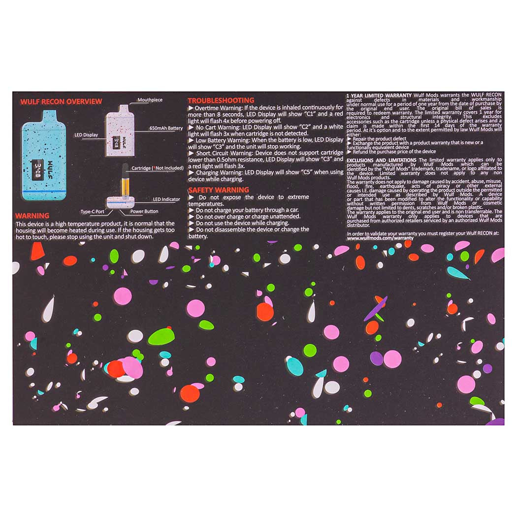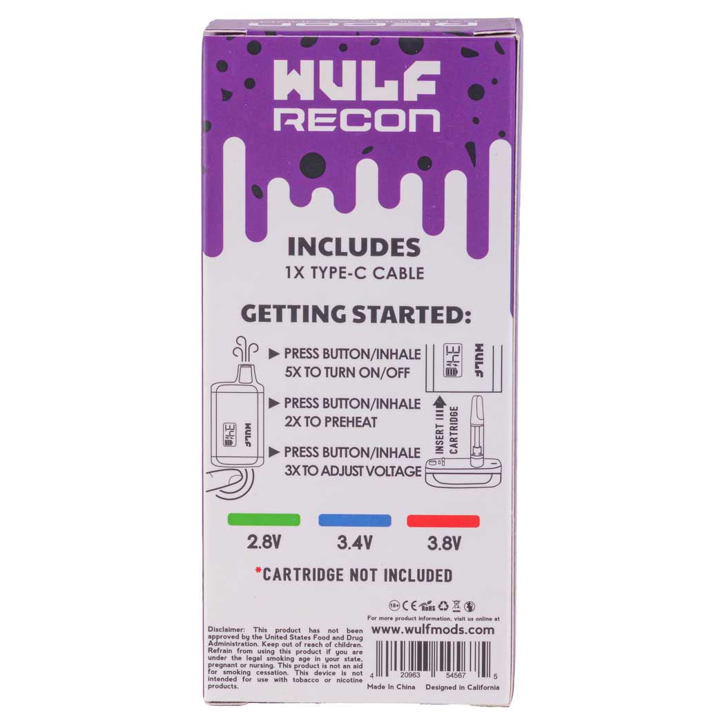 Introducing the Recon Cartridge Vaporizer by Wulf Mods, a compact and stylish battery built for oil cartridges. It pairs a discreet profile with an LED display so you can check battery life and voltage at a glance, and offers three variable voltage settings for tailored vapor production.