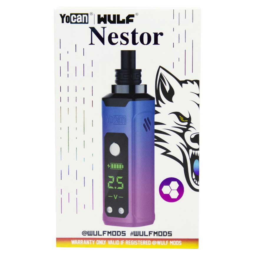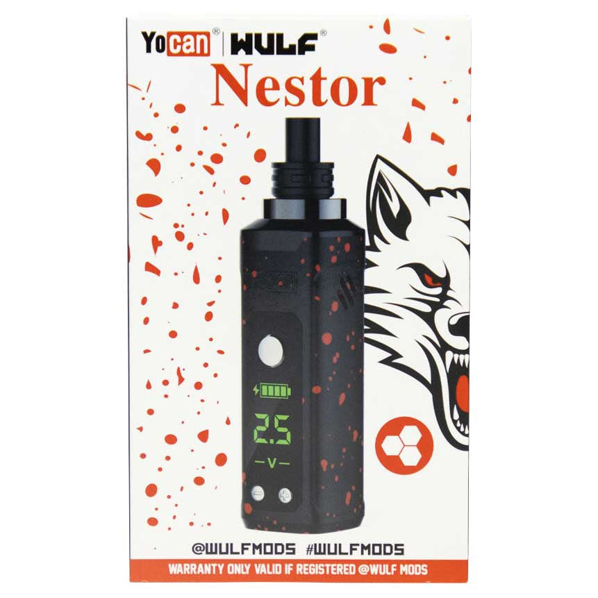 The Wulf Mods Nestor is a compact powerhouse built for flavorful, potent concentrate sessions. Its quartz-filled QTZI coil delivers rich vapor, while dual air vents and a magnetic silicone-tipped mouthpiece make every hit smooth and effortless. With a sleek zinc alloy body and a vibrant digital display, the Nestor blends style, control, and portability into one lean, mean dabbing machine.
