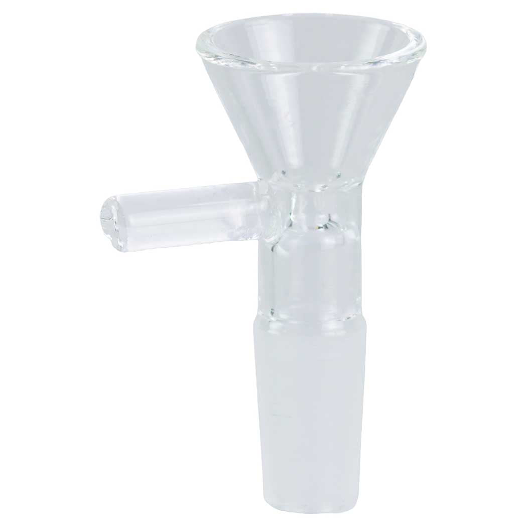 Simple and functional, this clear 1.50 inch 10mm slide features a funnel bowl and a small side handle for easy removal and handling. Designed for reliable fit and clean pulls in compatible water pipes.